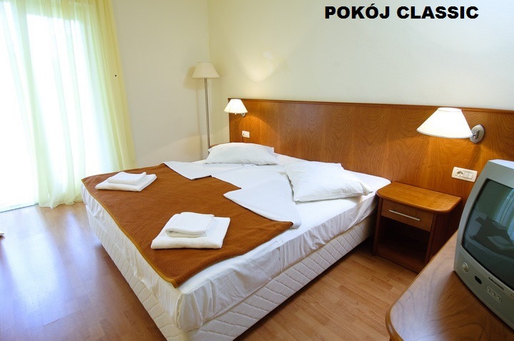 którym mieści się recepcja. Plaża: skalista (płaskie kamienie) oddalona do 5 min. pieszo od ośrodka, kamienisto-żwirowa i wybetonowana na terenie ośrodka. Basen: odkryty z wodą morską i brodzik dla dzieci. Leżaki i parasole (w cenie/ograniczona liczba). Zakwaterowanie: w ośrodku znajduje się 48 pokoi standardowych oraz 77 pokoi komfortowych (pokoje mają standard 2*, podstawowe wyposażenie). POKÓJ 2-OSOBOWY Z MOŻLIWOŚCIĄ DOSTAWKI, CLASSIC (73545): pokoje zlokalizowane w 3 budynkach, SAT-TV, telefon, wiatrak, łazienka/WC, balkon/taras. POKÓJ 2-OSOBOWY Z MOŻLIWOŚCIĄ DOSTAWKI, KOMFORT (66583): pokoje zlokalizowane w pawilonach, SAT-TV, telefon, wiatrak, łazienka/WC, taras. Wyżywienie: śniadanie (07:00-10:00) i obiadokolacja (19:00-21:00) w formie bufetu. Możliwość wyżywienia FB (dodatkowo lunch) za dopłatą. *wyżywienie FB jest możliwe jeśli wykupione będzie dla wszystkich osób w pokoju. Ośrodek dysponuje: restauracja, bar przy basenie (08:00-23:00), parking (w cenie), wymiana walut, animacje (6 x w tygodniu; lipiec-sierpień), muzyka na żywo kilka razy w tygodniu (lipiec-sierpień), internet WiFi (odpłatnie), całodobowa recepcja, salon piękności (odpłatnie), sejf w recepcji (w cenie). Sport: w cenie: mini-siłownia; odpłatnie: korty tenisowe, tenis stołowy. Zwierzęta: dozwolone (odpłatnie). Godzina zakwaterowania / wykwaterowania: 16:00 / 10:00 |